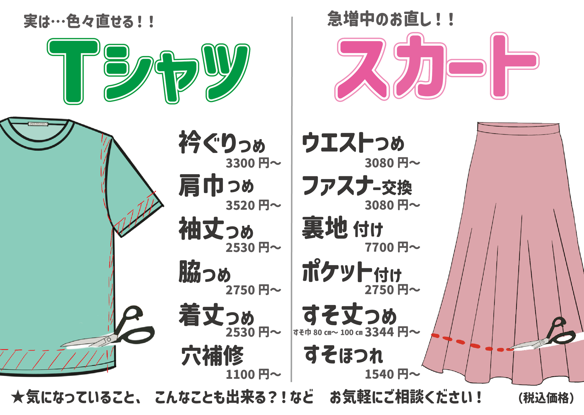 そで丈つめ | 2420円~ | 丈つめ タイトスカート | 3080円~ | |